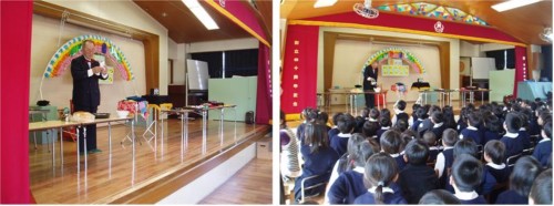 2月4日は2月生まれのお友だちの誕生会でした。そこへお祝いに来てくださったのは手品のおじさん清水さんです。清水さんは第一幼稚園の保護者OBでいらっしゃいます。歴史をはじめいろいろなことにお詳しく、大学で講師もされていた方です。趣味で始められた手品をいろいろな施設で披露されていて、第二幼稚園にも毎年、誕生会に来ていただいています。今年も子どもたちは「オー!」「すご~い!」「どうして?」「どうなっているの?」と不思議な出来事に感動していました。「面白かった~。」「ありがとうございました。」「またきてね~。」と子どもたちの声にニコニコ笑顔で「また、きま~す。」と清水さんも答えてくださいました。