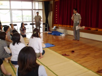 6月5日(金)清水消防署の方による救急法講習会を行いました。人工呼吸と心臓マッサージとAED(自動体外式除細動器)を併用しながら実践をしていただきました。