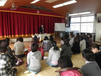 幼児期はたくさん遊ばせなさい。子どもには「大好きだよ。私の産んだ子。可愛いね。」としっかり伝えてくださいとおっしゃいました。参加されたお母様方はうなずいたり、笑ったり、驚いたりされながら、聞いていらっしゃいました。
