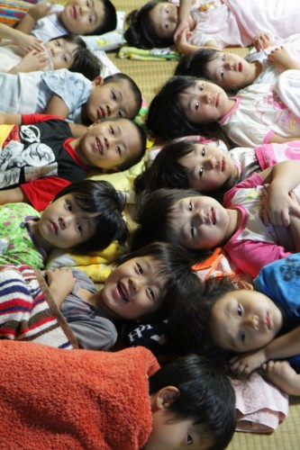 リハーサル2回での本番です。途中、アドリブが入ったり、無茶ぶりが入ったりと、本人達でないとわからない変更がいっぱいありましたが、個性豊かなシンデレラはいかがだったでしょうか?劇も終わり、リズム室で保護者の方と「おやすみなさい」とご挨拶をしました。毎年なかなか離れられなかったり、涙が出る子どももいますが、今年は泣かずにご挨拶が出来た子どもが多かったような気がします。シャワーを浴びてすっきりしたら、にっこり笑顔でリズム室に戻ってきました。パジャマで記念撮影をして、DVDを見て、電気を消して「おやすみなさい」をしました。もう11時を回りました。でもまだ、ちょっと興奮気味で、隣の友だちと目を合わせてうふふ。あら、もう寝息が聞こえている子もいます。これから、先生たちは交代で寝ずの番です。外には警備の方がしっかり守ってくださっています。「みんながんばったね。」