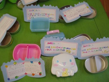 年長さんにとって今日はみんなで食べる最後のお弁当です。小学校では給食なので、お母さんにお弁当を作ってもらうことが少なくなります。みんなが幼稚園に入ってからずっと、お母さんは「全部食べてくれるかな。」「大きくなってね。」などいろいろな思いを胸に工夫しながら愛情たっぷりのお弁当をつくってくださいました。Aこちゃんがお弁当を開くとお母さんから「お弁当を食べてくれてありがとう。」とメッセージが入っていて先生もみんなも感動でウルウルでした。「いままでありがとうございました。これからもよろしくお願いします。」とお手紙を書き、お弁当箱を洗って帰りました。親子でも感謝の気持ちを持ってそれを表すということはとても大事なことだと思います。親子関係は自分と他人との関係をつくっていく第一歩です。