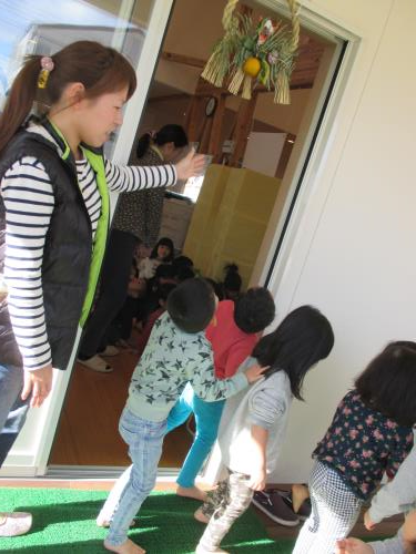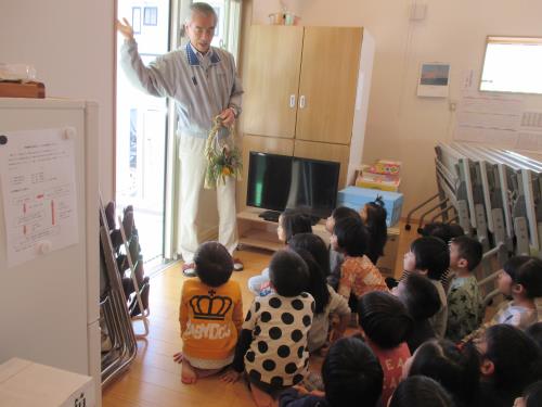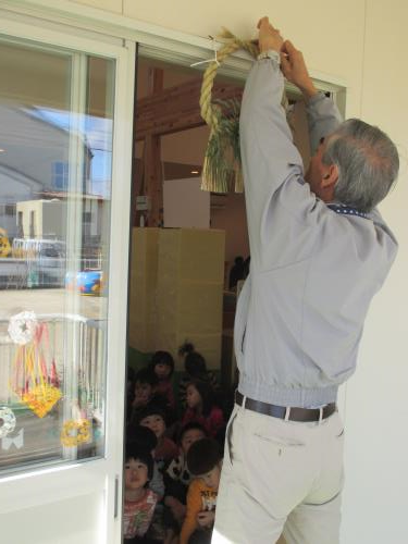 本日、2016年の登園日最後の日を、無事終えることが出来ました。この一年大きな事故も無く、69名の子ども達が元気に登園してくれて、沢山の笑顔を見せてくれました。2017年も素敵な一年を送っていきたいと思っています。保護者の皆様のご理解、ご協力に心より感謝いたします。良いお年をお迎えください。  |  |  | 子ども園の玄関。 事務所の入り口に飾りました | 「うらじろ。だいだい。干し柿」それぞれの意味を話していただきました。 | 物の意味について、真剣に聞きまた、知識が増えましたね |