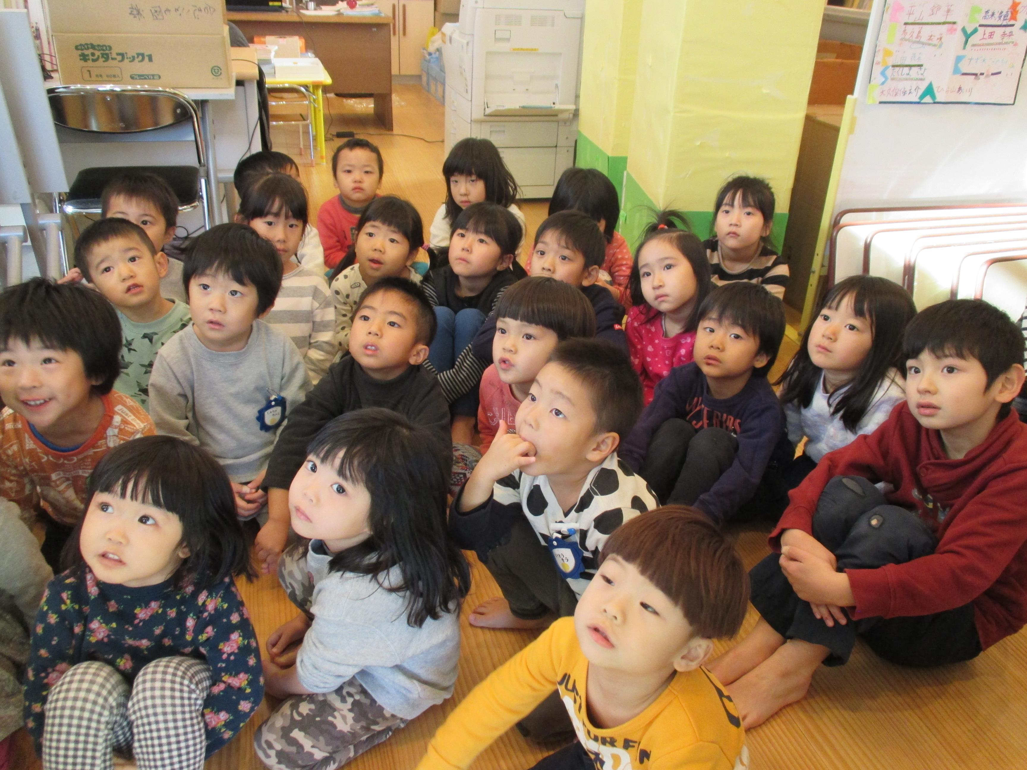 |  |  | 3歳児 すごーい。たかいね | 4歳児 あれ?白い紙もついてるよ なにかな? | 5歳児 だいだい・・・・ うらじろ・・・・一つ一つ確認するように見入っていました |