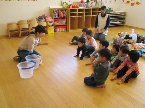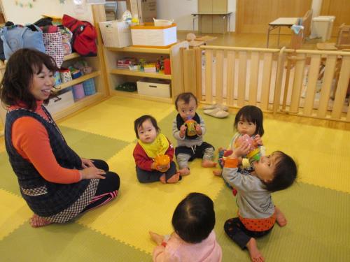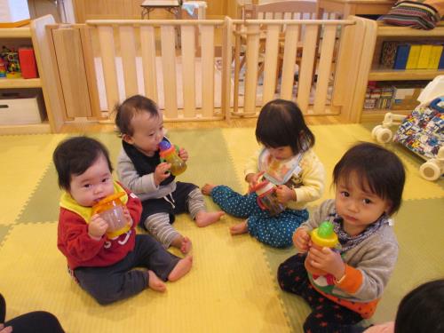 未満児さんは、それぞれのクラスで最終日を過ごしました。  |  |  | 0歳児 冬もしっかり水分補給をしますよ。 のどを潤して、風邪予防しようね | ストローも上手になりました。一つ一つできるようになって感動をくれました。 | 1歳児 たくさん遊んだ、お部屋を大掃除しましょうね こうやって拭くよ |
