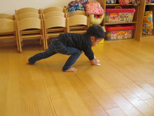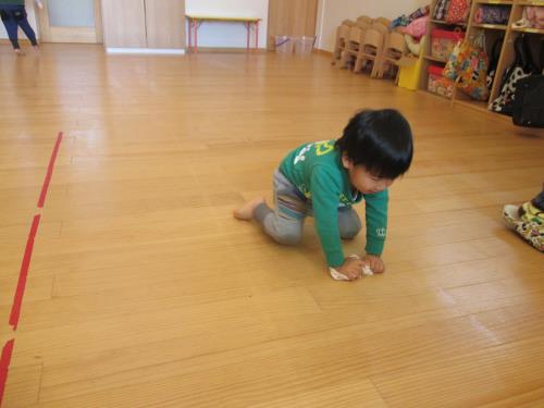 |  |  | 「お友だちとの掃除楽しいよ」 「みんなで綺麗にするんだよ」笑顔が楽しさをつたえてくれます。 | 一番のきしゃ拭き名人でした。背中をピンと伸ばしたり、手で体全体を支えたり、足を踏ん張る。と色々な所が上手く使えています。 | 「きしゃ拭きやってみようかな」お尻を浮かせるところまで出来たね。次は足がのびるときっとできるよ。 頑張ってね |