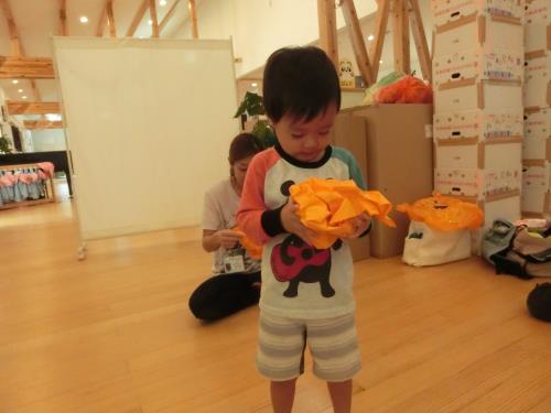 第1回目は「制作」でした。コスチュームを親子で作ったり、ゲームで使う用具(かぼちゃに見立てたボール)作り、飾りつくりをしました。どちらの衣装にしようか?顔はどうしようか?等々親子で会話をしながら楽しんで頂きました。「持って帰りたーい」コールに次回持参を約束して、今日の活動を終えました。さて!次回。どんな内容の活動が展開されるでしょうか。楽しみです。