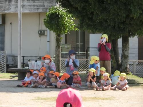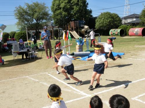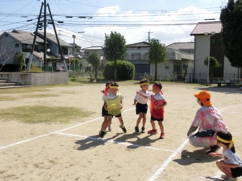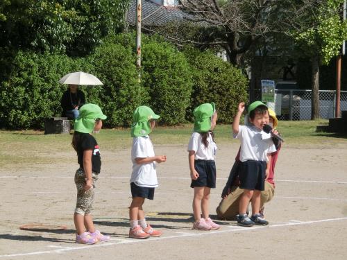 | 広い公園をつかって、運動会の練習に取り組んでいる以上児さんは場所が変わっても普段通りに取り組むことができます。年齢を重ねる中で、広い空間の中での自分の位置を把握する力が育ってきます。「空間認知力」といいますが、頭の中で広さを認識しどの場所を使っているのか!どんな形になっているのか!をイメージすることで、場所が違っていたとしても自分の取り組んでいることが発揮できる力です。 コロナ禍における間隔の維持、マスクの取り外し、応援の仕方等々子どもたちと対策を考え取り組んでまいりました。 「自分で考えて行動する力、自己発揮する方法」を一人一人が表現し保護者の皆様に伝えられる活動になることを願っています。