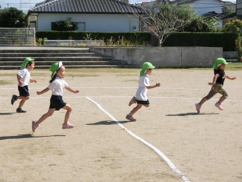 | 手を挙げて返事をすることに取り組んでいます。 しっかりのばすことが出来ていますね | ゴールを目指して最後まで走りぬけます。 さあ今日の順位はどうかな? | ちょっぴりドキドキしますが、返事も頑張っています |