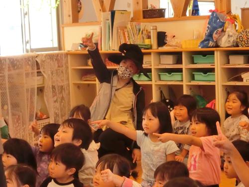 | こども園では2歳児から5歳児の園児が、毎日英語に触れる時間を過ごし、いろいろな言葉があること、いろいろな国の存在を知るきっかけとして英語活動に取り組んでいます。 英語の歌を歌ったり、単語に触れたり、英語をかいてみたり。毎回英語の時間を楽しみにしながら、活動しています。 10月!ハロウィンにちなんだ、パーティーが計画されました。 魔女に扮した先生の登場に、子どもたちの気持ちもたかまり、魔法の言葉で色が変わるお化けのお話の中で、一生懸命色を英語で答えていました。 幼児期に耳にすることで、より習得しやすいといわれる英語活動。これからも楽しく学んでいきます。