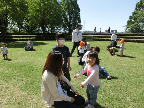 | いつも使っている広場もおうちの方と使うと、心も笑顔もはじけるようです。 |