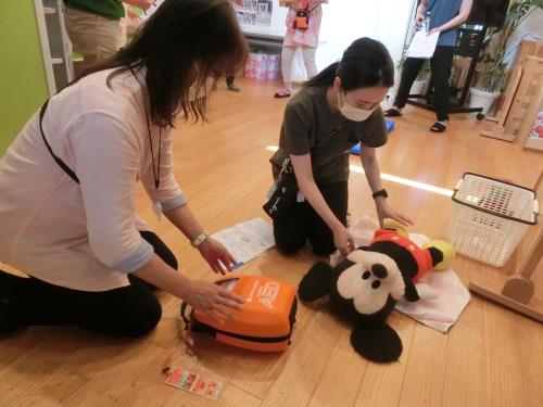 | | 「大丈夫ですか?大丈夫ですか?」てきぱきと対応される様子は流石です。 | 最後に模範訓練を見せていただき、腕やテンポ、力加減等ポイントを再確認できました。 |