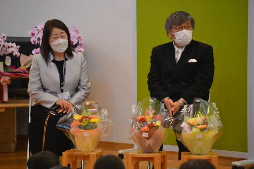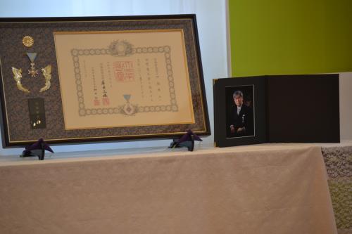 | | 報告会に理事長先生・雅紀子先生が出席していただきました | お祝いの言葉を伝え、理事長先生の話を聞く中でどうして受賞することができるのかを知ることができました。 | 受賞記念にお祝いの品を頂きました。 記念品を見るたびにこの日のことを思い出すことでしょう |