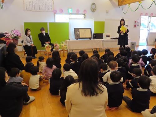 「理事長先生。いつも温かく見守っていただき、ありがとうございます。これからも大好きなこども園で頑張ります」 令和4年秋の叙勲に本学園の理事長である、伊藤博士理事長先生が選ばれました。