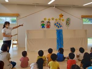 7月2日(金)七夕会を行いました。例年ですと、祖父母の方や地域の方々との交流を兼ねて、会を実施しておりますが、今年度も感染症の状況を踏まえ、園内の子ども達で行いました。