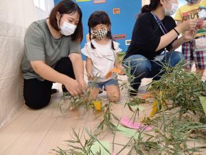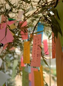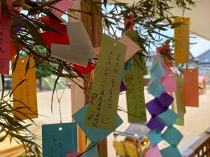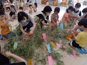 各家庭で思い思いの願いを書き込み、みんなで笹に飾り付けました。