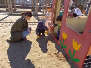 | | 外がポカポカいいお天気でしたので、園庭遊びも楽しみました。 | 在園児さんとの交流 |