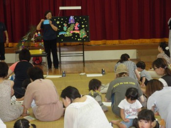 今日はさくらんぼくらぶのお友だちと七夕飾りをつくりました。雨の中をたくさん参加していただきありがとうございました。まず、ブラックシアターで七夕のお話を見ました。お部屋が暗くなってきらきら光るお星さまが見え、びっくり。その後、ロケット、スイカ、輪飾りなどをつくりました。クレヨンやのりを初めて使う子どもたちも多く、親子で楽しそうに作っていました。お母様のほうが夢中になっていらっしゃる様子もありました。最後にみんなお星さまになって、すずを持って、きらきら星の合奏をしました。7月7日の七夕はお天気になって、お星さまが見えるといいですね。みんなの願い事も叶いますように…