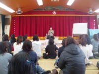 心理カウンセラーの三浦佑子先生のお話をお聞きしました。50人ほどのお母様が参加されました。しつけの基本は『あいさつ』と『くつそろえ』と『返事』