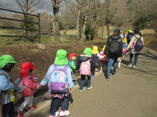 |  出発前に「道に広がらないで歩く」「公園では自然を大切にする」「先生の話しをよく聞いて行動する」の約束をしました。