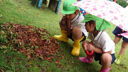 雨の日は戸外で遊ぶことが出来ず残念ですが、「カタツムリや植物が喜ぶよね!!」と雨の大切さも分かってきている年長組です。