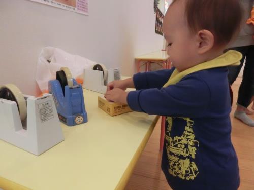 |  |  | 「ここをぎゅっとして・・」 どうやったらやわらかく出来るか?考えて取り組んでくれました | 「僕はたーくさんのゴムが気になるよ」 むぎゅむぎゅしてきもちいいなぁ | 1歳のお友だちも、ぎゅうぎゅう手先を使って感触を味わっています |