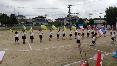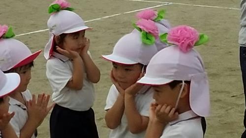 |  |  | 3歳児表現 本番はお家の方と出来ることを想定しながら、隊形を作って目的を持った行動ができます | 3歳児表現 大好きな曲に合わせて、可愛いポーズもお気に入りです。 練習はお友だちと取り組むことで、本番を意識しています | 2部開会式 年中に進級し、真っ直ぐに!間隔!を意識して日々取り組んでいます。一人一人が考えている様子が伝わります |