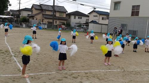 |  |  | 4歳児 表現 大好きな曲に振り付けをみんなで考えました。風になびくポンポンがとても綺麗です | 4歳児 表現 「隊形を作る、変化させる」友だちとの間隔を考えながら自分たちでフォーメーションにチャレンジしました。 | 4歳児 表現 腕高く伸ばすことで、ポンポンもさらに揺れていました。 どのようにすると、素敵になるかを考えて発表します |