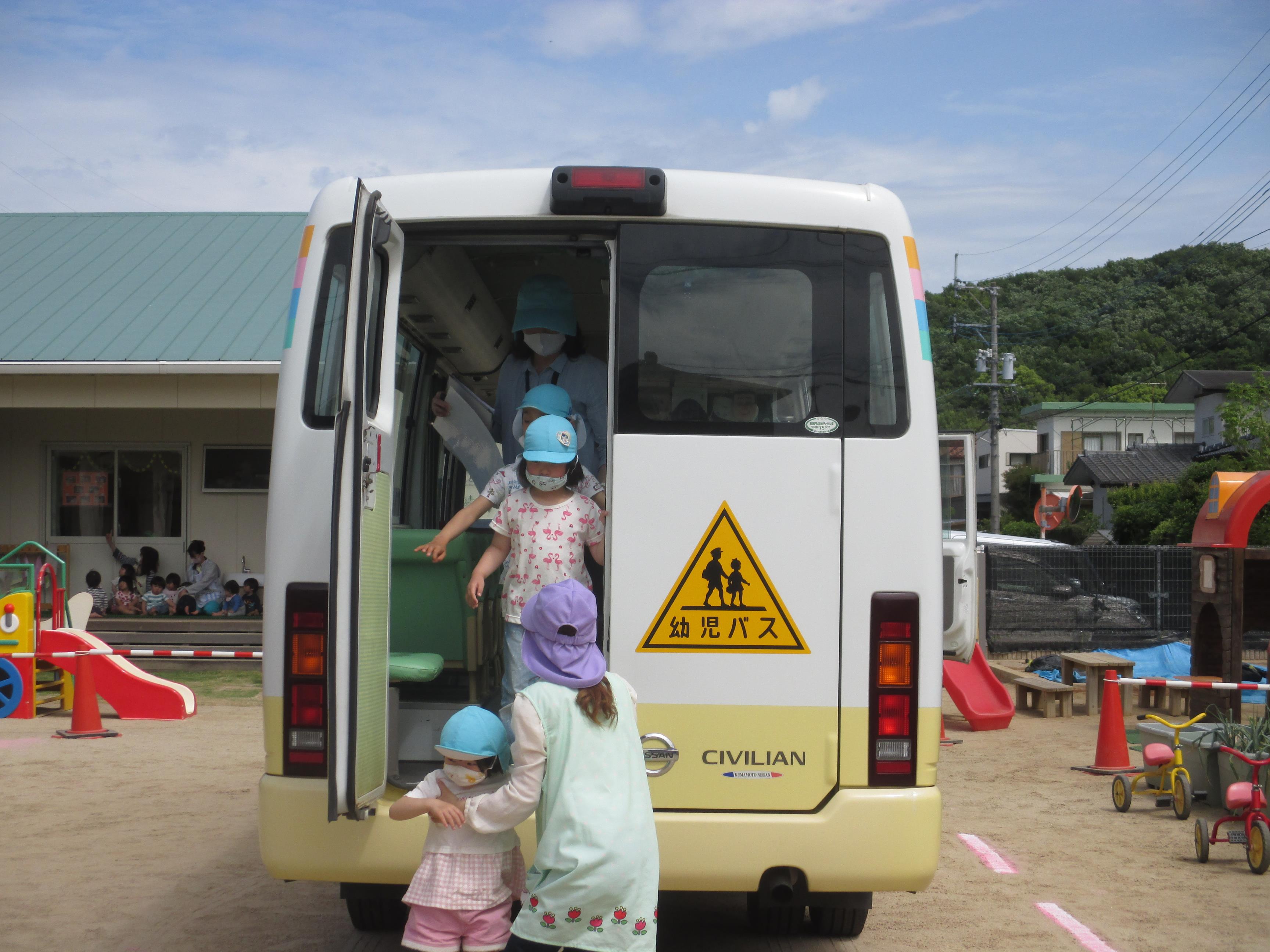 今日は、こども園の園庭の中に大きな杉並台幼稚園のバスがきて、体験できたことを忘れずバスを利用していきたいと思います。大きなバスにみんな興奮気味でした。 早くコロナが収束して、みんなで園外活動が活発に出来ることを願っています。