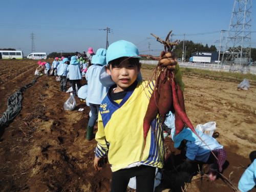 | 雨で延期になったいもほりですが、秋晴れの中、畑に行くことが出来ました。 これまで学園の食育教育にご協力いただいてきた村田様の畑でのいもほりが今回で終わりを迎えることになり、これまでお世話になってきたことへのお礼を伝えました。 「一生懸命お世話をしてきたお芋なので、おいしく食べてほしいです。このお芋はてんぷらがおいしいですよ」と声をかけていただき、持ち帰ったお芋をさっそくてんぷらにしてもらって食べたよと話してくれました。 いろいろな方のご協力があって、体験できることがあります。感謝の気持ちを忘れずに、お芋を見たら広い畑でほった芋ほりの様子を思い出してほしいと思います。