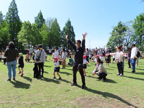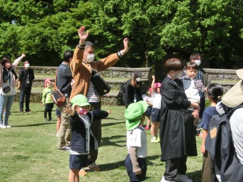 | 天候にも恵まれ、3年ぶりにお見知り遠足を実施しました。コロナ禍であることで、マスクを着用しての遠足となりました。戸外活動ですが、お友達との距離が近かったり、親子で触れ合う活動内容時には、気温上昇による熱中症も気掛けながら「マスクの着用」に取り組みました。 飯高山は日ごろから散歩や展望台のぼりや広場遊び等で利用している、地域の公共施設です。今回遠足の会場に選んだのは、「日ごろどのような場所を利用しているのか。どのようにして散歩に出かけているのか。安全に行くにはどのようなところに気を付けているのか。」等を保護者の皆様に体験していただくこともねらいとしていたからです。 親子で歩いていく道のりは、こども達のとっても特別だったようです。笑顔で会話したり、ここ気を付けていくところだよと教えたり、保護者様もしっかりとした足取りで歩く我が子に笑顔があふれていました。こども園は地域を生かした活動を大切にしています。これからも季節の移り変わりを飯高山で沢山体験していきます。休日にまた足を運んでいただけると、新しい発見ができると思います。