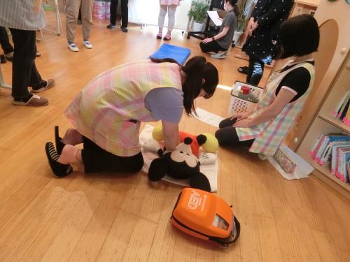 様々な対応に取り組むことが命を守ることにつながることを学びました。器械で図ることも大切ですが、顔色や表情、呼吸の様子等(目視での確認)いつもと違うところはないかを確認することも必要です。これからの季節、戸外に限らず子どもたちの様子を確認しながら元気に遊ぶことができるようにご家庭でもとりくんでください。