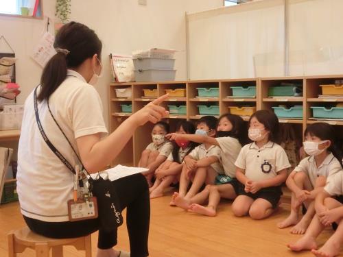 | 6月25日、朝から雨脚がひどく「お迎え訓練」実施もあやぶまれたなか、こども達が園へ登園し終えたころには雨もやみ訓練内容を変更して実施しました。 平成28年の熊本地震から丸6年。その後当時レベルの地震は起こっていませんが、規模が小さくなった地震は今でも時々起こっています。これまで幸いにも、こども達がこども園を利用している時間に大規模な地震発生はありませんが、園では地震を想定した訓練にも取り組んでいます。地震だけでなく、地震後火災が起こった場合・避難場所を移動する場合等です。今回のお迎え訓練も非常事態を想定し計画しました。 仕事に行っているとき「緊急迎え」対応をしなければならなくなった場合、保護者の誰がどのようにしてこどもを安全に引き取ることができるか?これまで想像されたことはありますか。 緊急事態ではだれでも冷静な判断力が低下します。行動を想定して訓練しておくことは、命を守る行動としてとても大切なことです。こども達は毎月の訓練を通して、「自分の命は自分で守る」ことを考えて行動するようにしています。今回の訓練を機にご家族で連絡方法・引き取り方法等検討されてみてはいかがでしょう。 訓練の翌日21時過ぎに、美里町を震源とする地震が起きました。あまりにもタイムリーな地震に驚くとともに、訓練の重要性を実感しました。「命を守る行動」を再確認していきましょう。