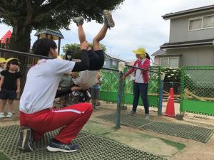 運動活動では、鉄棒に取り組んでいます。