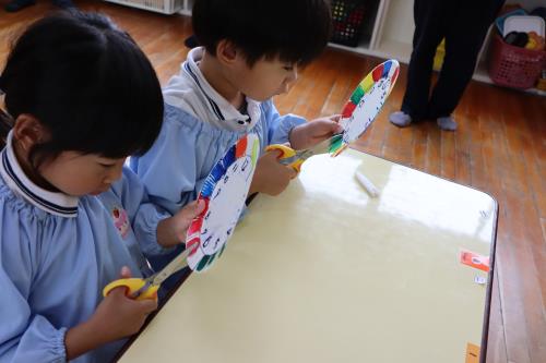 難しいところは、「手伝ってください」と自分で伝え、最後はおうちの方にも参加していただきました。つき組(5歳児)