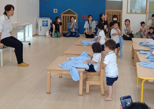 子育てのパートナーである保護者の皆様に、生活習慣や各年齢に沿った活動など日ごろの様子を観ていただき、こどもたちは大好きなおうちの方と一緒に過ごす時間を喜び、いつも以上に張り切っている様子も見られ、充実した時間となりました。