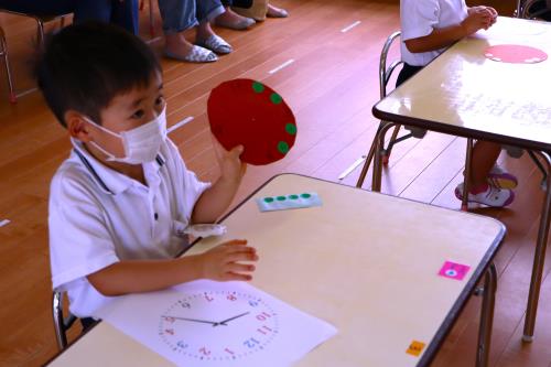 数字や時計に興味を持ちながら、『切る・構成する・貼る』などを通して、自分なりに工夫して作ることができました。