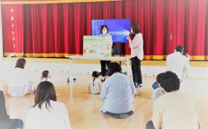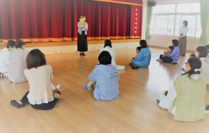 | 体を動かした後は、大型絵本をみながらゆっくりと過ごしました。みんな集中して楽しむことができましたね。 |