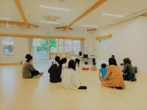 | 明るいcopain(こぱん)の部屋で、ゆったり絵本タイム | 今回のダンスが『白くまくん』をテーマとしていたこともあり、「白くま見たことあるかな?」と絵本を通してイメージを膨らませました。 |
