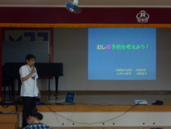 歯の衛生週間にちなみ、学園歯科医師の伊藤明彦先生に『歯科検診』と『虫歯予防を考えよう』という